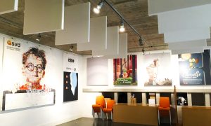 Les panneaux suspendus peuvent être des baffles ou des capteurs, le choix de l’un ou de l’autre sera fortement influencé par l’architecture des lieux.