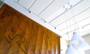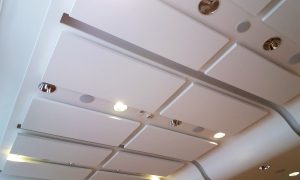 Si le plafond est constitué de plaques de plâtres perforées ou de dalles avec une ossature apparente ou cachée, TDACOUSTIC vous proposera la mise en place d’éléments suspendus comme des Capteurs ou des Baffles. Il est possible également de coller des éléments acoustiques directement sous le plafond. Le choix se fera en fonction de l’architecture de la salle, de la hauteur de votre plafond, mais également des choix esthétiques du client.