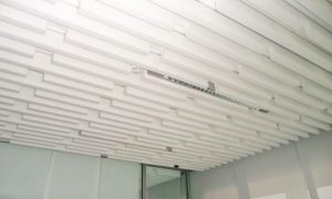 Si le plafond est lisse style plafond béton enduit ou peint, plaques de plâtres enduites et peintes ou s’il est métallique, il est possible de coller des éléments acoustiques directement sous le plafond.