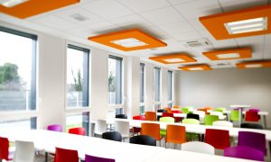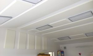 Il pourra être nécessaire de mettre en place des panneaux sur les murs et retombées murales en fonction du volume et de la sonorité de la salle. Pour cela diverses solutions d’isolation acoustique peuvent être apportées.