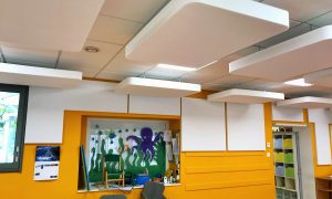 Les crèches et haltes garderies sont des espaces dédiés à l’accueil et à l’éducation des tout-petits. Ces lieux de vie sont donc remplis de bruits de jeux, chants, rires, cris, pleurs… et peuvent donc s’avérer particulièrement bruyants. Pour le bien-être des enfants et du personnel, il est nécessaire d’apporter une grande importance à la correction acoustique de ces locaux en limitant au maximum la réverbération et l’écho dans ces pièces par la mise en place de panneaux absorbants sur les plafonds et les murs.