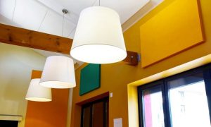 Vous pouvez alors apporter une isolation et correction acoustique à votre plafond par la mise en place d’éléments qui sont suspendus par des câbles de hauteur réglable ou de chaine, aux crochets spiralés fixés dans le panneau acoustique.
