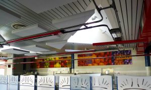 Pour les restaurants scolaires, il est d’usage de respecter la réglementation en vigueur pour l’acoustique. Pour cela, le traitement doit se faire en adéquation avec vos supports existants et sans démontage préalable des éléments constituant vos plafonds et vos murs.