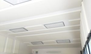 Si vous avez un plafond à ossature apparentes ou cachées ou un plafond constitué de plaques de plâtres perforées, il sera possible de mettre en place des panneaux suspendus sous le plafond.